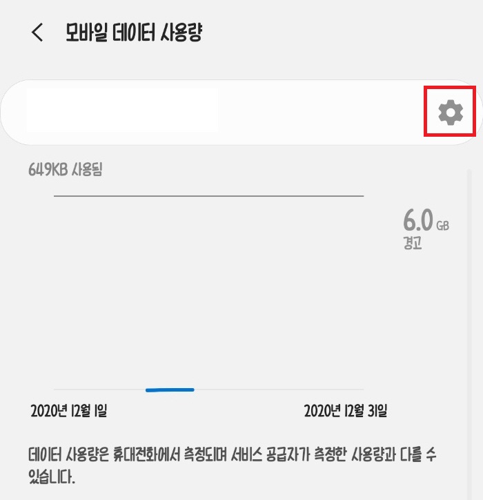 모바일 데이터 사용량을 확인할 수 있습니다. 여기서 설정을 눌러주세요.